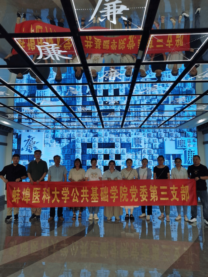 为深入学习贯彻习近平总书记关于党纪学习教育的重要讲话批示精神,教育引导广大党员干部强化廉政意识和法纪观念,6月3日,公共基础学院党委组织第三支部、第六支部、第八支部、第九支部和学生第二支部部分党员前往蚌埠市委党校廉政教育基地参观学习。