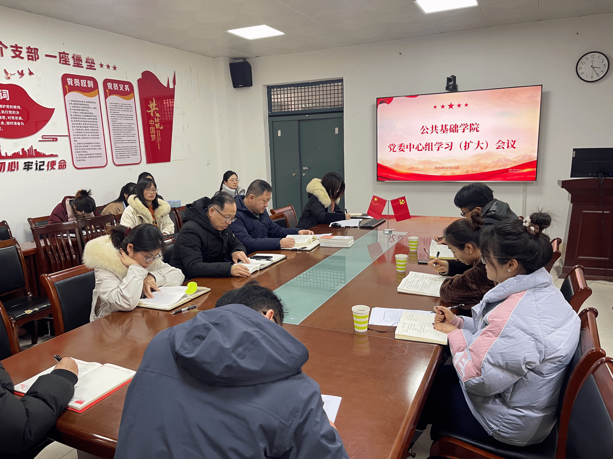 12月23日,公共基础学院党委召开2024年12月份党委中心组学习(扩大)会议。学校巡听旁听组组长学生处宋松副处长一行三人莅会指导,学院党委委员、纪委委员、支部书记和支部委员、教研室(实验中心)负责人、专职辅导员参加学习。