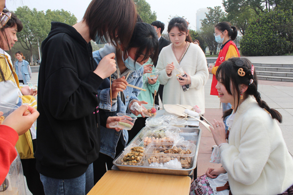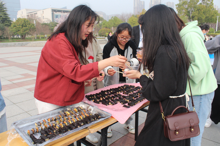 为做好前期准备工作,各参赛组队员严选新鲜食材、讨论制作流程、规范制作过程,在实验教学楼D座食品工艺室制作了琳琅满目的美食,充分体现了队员们的潜心态度和匠心精神。评比活动在西门文化广场展开,各组美食列阵以待,前来参加活动的同学们则担任大赛评委,依次品尝后投票产生评比结果。最终,参赛作品星期天下午(可可蛋糕)、芝士焗红薯、无骨柠檬鸡爪、肉松小贝等作品令人口齿生津,获得同学们的一致好评。活动现场,队员们还积极向广大同学科普食品安全相关知识及维护自身合法权益的措施。