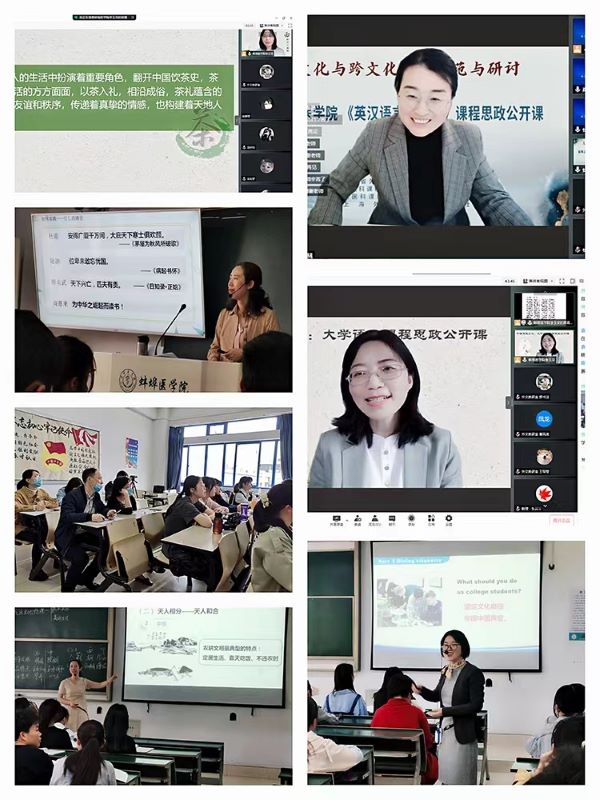 4月12日和25日,两场大学语文课程思政公开课分别以线上和线下的方式进行,《诗经》润物无声地将增强文化自觉和文化自信、传承中华优秀传统文化的责任与担当播撒于学生的心田。《论语》以时事新闻、古今诗词为例,帮助学生们在理解《论语》原典的同时,培养他们为人处世的底线意识、勇担考验的责任意识等,润物无声地达成了思政育人的目标。4月16日和21日,《英汉语言与文化》和《大学英语》课程思政公开课同样采取线上与线下结合的形式,前者介绍中国传统节日、古诗等优秀传统文化,提高文化自信和民族自豪感;引入习近平总书记提出的“三牛精神”,并结合我校校训,鼓励同学们为实现理想而奋斗。后者在提升学生英语语言水平的同时,增强跨文化意识和跨文化能力,使学生深切感受到深处世界文化之林中,既要包容异国文化,又要坚定文化自信,既要发挥语言的工具性,又要实现语言的文化功能,勇于承担学好英语、讲好中国故事的重任。6月份,三场《中国饮食文化》课程思政公开课顺利举行,内容涵盖孔子的饮食之道、中西饮食文化比较和茶的文化属性。通过学习,学生们意识到传承中华传统饮食文化智慧的使命,在为中国饮食文化自豪的同时,也应该在中西饮食对比中取长补短,推动中国饮食文化更好地发展。