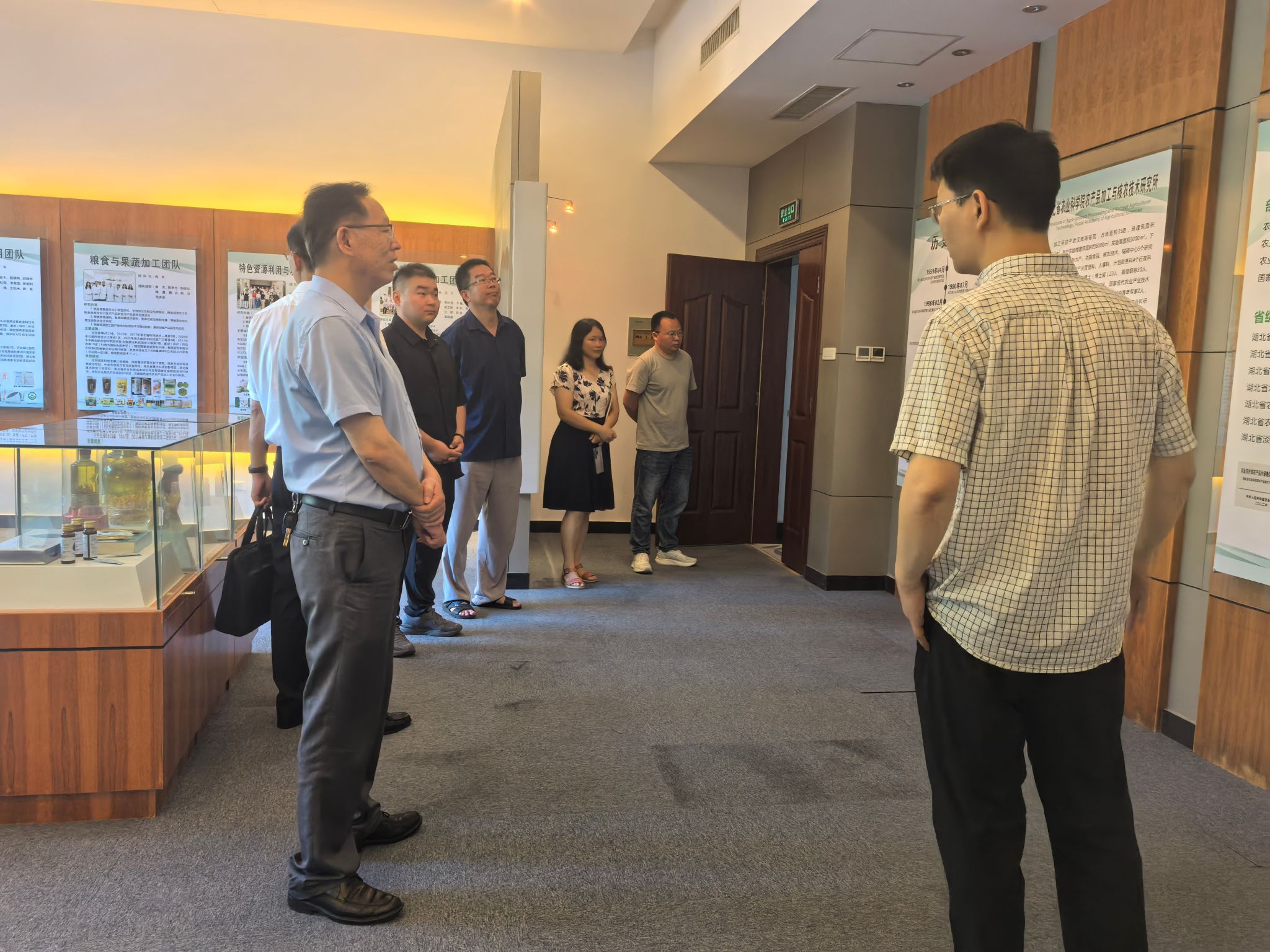 座谈会后,在研究所负责人的陪同下参观了辐照中心、教育部重点实验室及农产品加工展厅等。