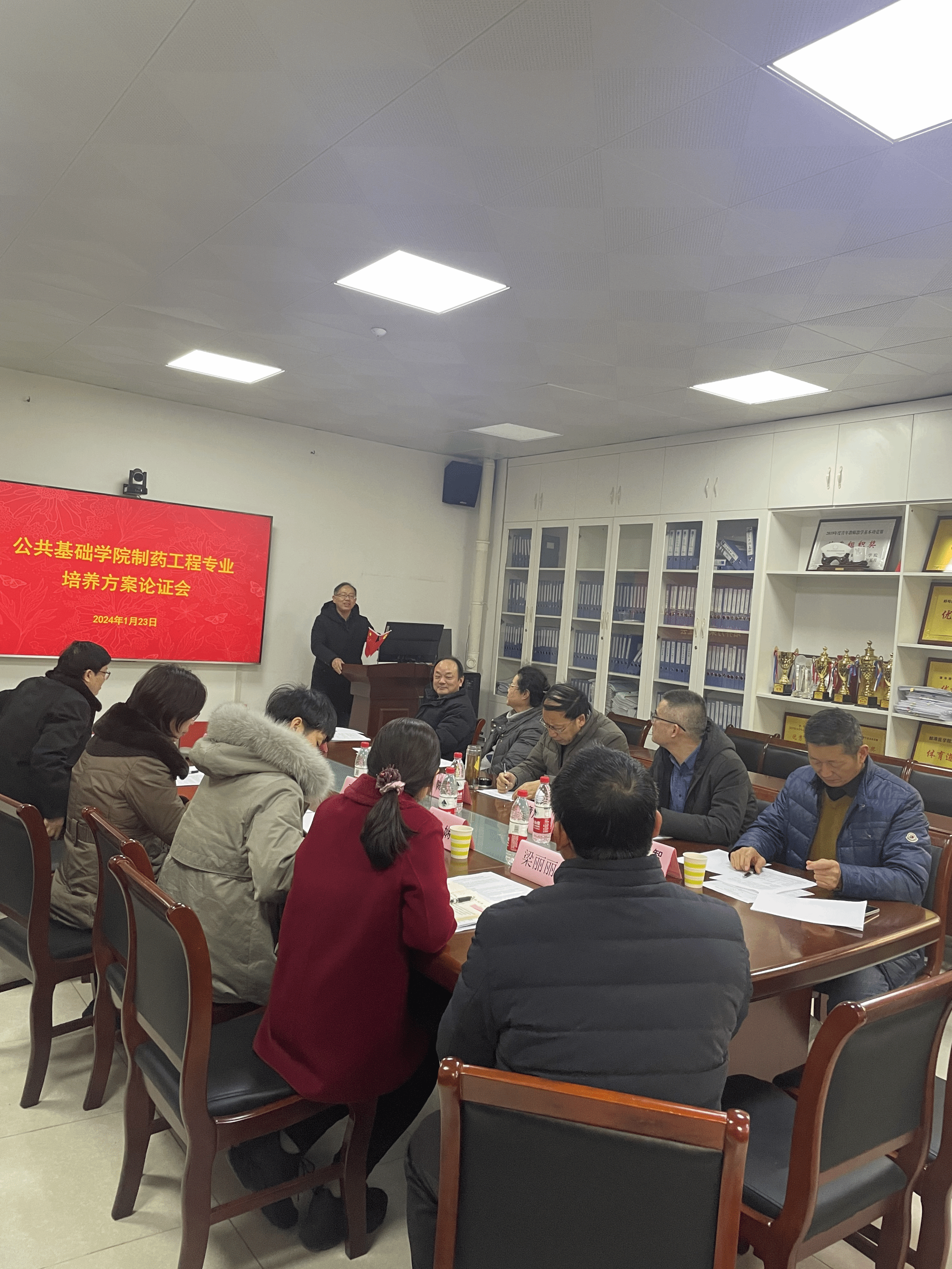 1月23日下午,公共基础学院组织召开2024版制药工程专业和食品与质量安全专业本科人才培养方案论证会。会议邀请安徽省药品监督管理局第五分局殷晓建局长、安徽省制药工程专业委员会主任委员合肥工业大学张洪斌教授、华方医药股份有限公司吴宗好董事长、宇萱食品公司张家训副总经理、安徽科技学院杨剑婷教授、学校教务处处长童旭辉教授、基础医学院院长陈兴智教授、生命科学院院长李正红教授、药学院副院长李娴教授等校内外9位专家,对新修订的培养方案进行论证。学校党委常委、副校长陈昌杰教授出席并致辞。会议由公共基础学院院长方强教授主持。