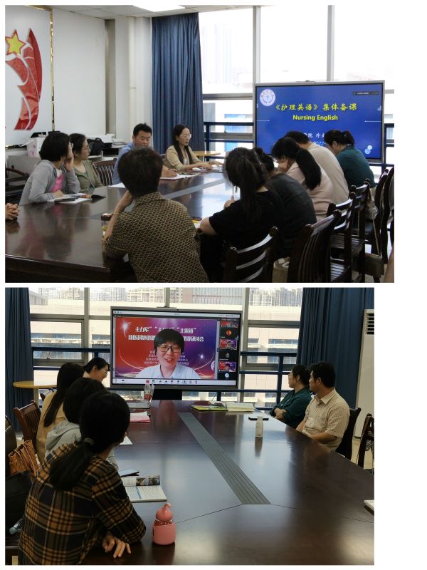 山东第一医科大学薛红副教授和大连医科大学于洋副教授分别主持了我校姚蓓副教授《护理英语》(课程思政板块)的集体备课和中国医科大学景然副教授的学术讲座单元,交流研讨单元由我校外文教研室负责人郭书法教授主持。