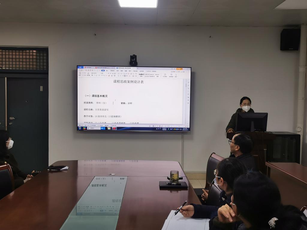 曹凤龙教授首先做了“课程思政素材库建设”辅导讲座,讲座从素材库建设的指导原则、建设流程、素材库类别等方面进行了介绍,并重点介绍了课程类素材库的建设流程、基本框架:素材名称、素材内容、素材育人主题、教学设计、教学效果、教学反思等。在交流环节,承担省级课程思政示范课项目的外文教研室李珂副教授结合自身的建设经验和体会向与会者展示了《大学英语读写教程》课程思政素材库的建设情况。参会教师就自己课程思政素材库建设过程中遇到的问题进行了交流。本次辅导讲座和展示交流,与会者从素材选取的规范性、素材内容的时效性、素材形式的丰富性、素材使用的效果反馈等方面深化了对课程思政素材库建设的理解。