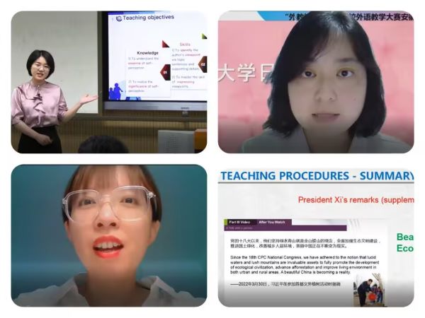 接到比赛通知后,公共基础学院外文教研室统筹安排,各组赛团队积极备赛,多次研讨,认真打磨教案、课件、讲稿和录课环节,精益求精,追求卓越。团队成员对教材和学情进行细致分析,明确教学目标和教学重点、难点;确立课前思政元素导入、课中课程育人深化、课后价值引领升华的实施路径。参赛课例遵循“以学生为主体,教师为主导,网络为媒介,产出为导向”的理念,在培养学生语言实践能力、运用批判性思维分析问题和解决问题能力的同时,倡导尊重多元文化,进一步坚定文化自信,加强对本国的文化认同感、自豪感和归属感。