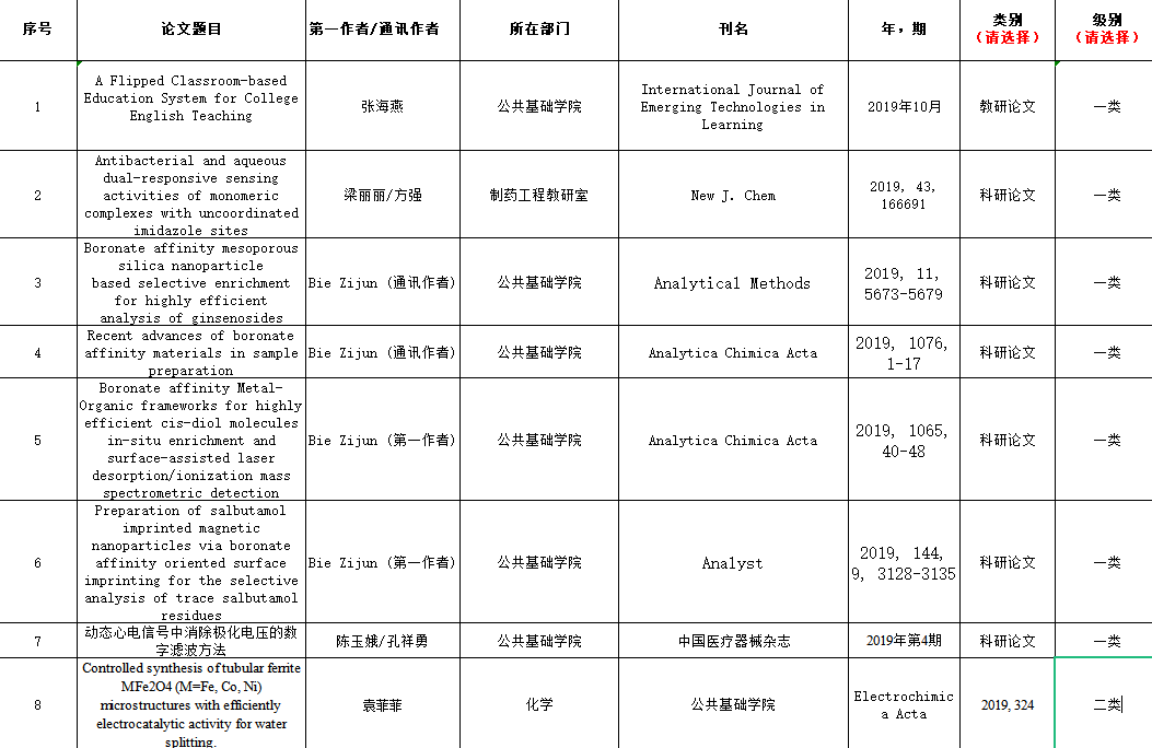 2019年发表论文汇总