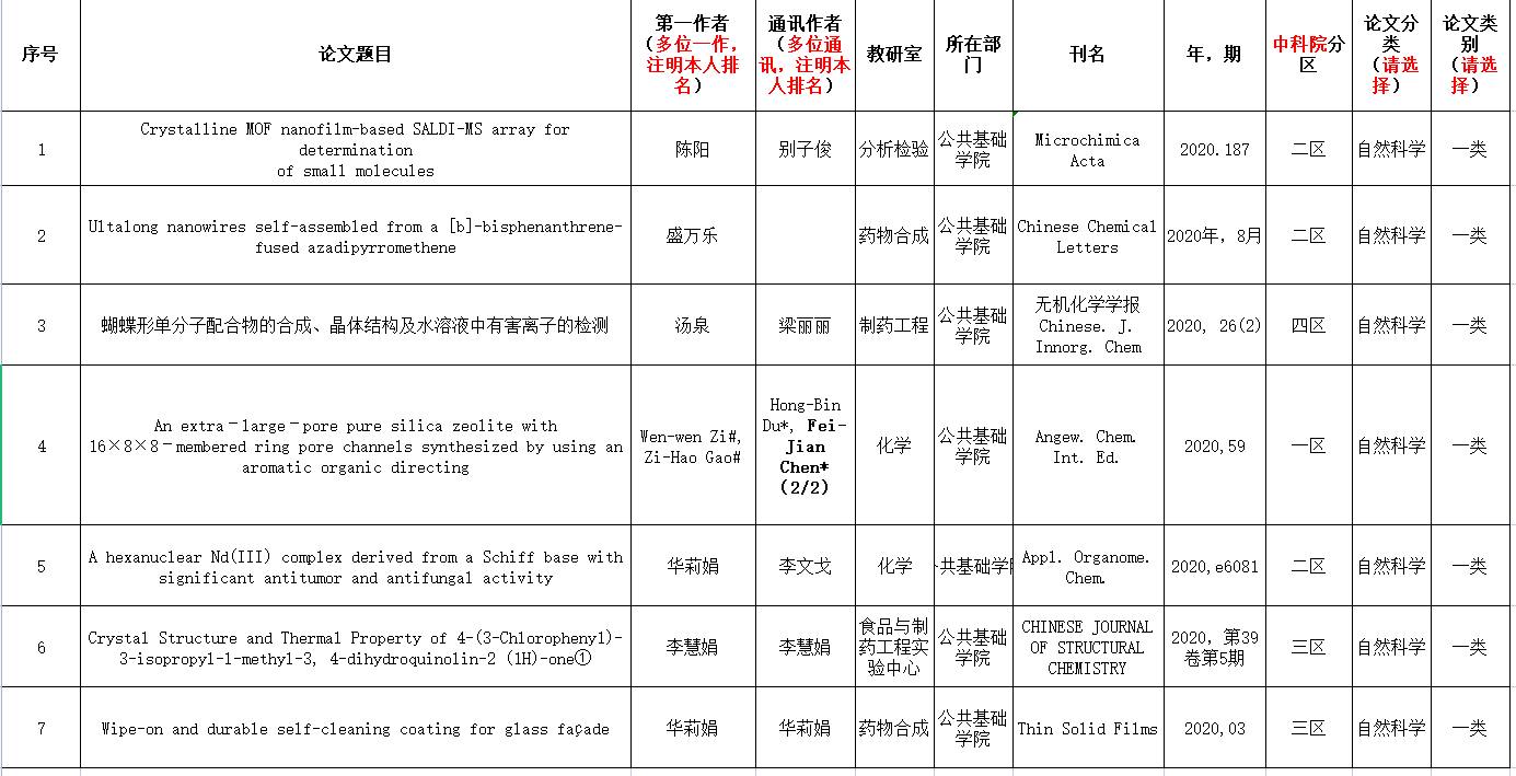 2020年发表论文汇总