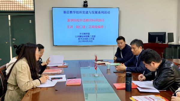 为扎实推进基层教学组织党建与发展工作,助力教师职业发展,规范论文写作和学术道德,4月26日,公共基础学院外文教研室邀请《蚌埠医学院学报》编辑部主任、正高级编审姚仁斌老师开展科研讲座和学术交流活动,活动由外文教研室主任郭书法教授主持,教研室全体教师参加了此次活动。
