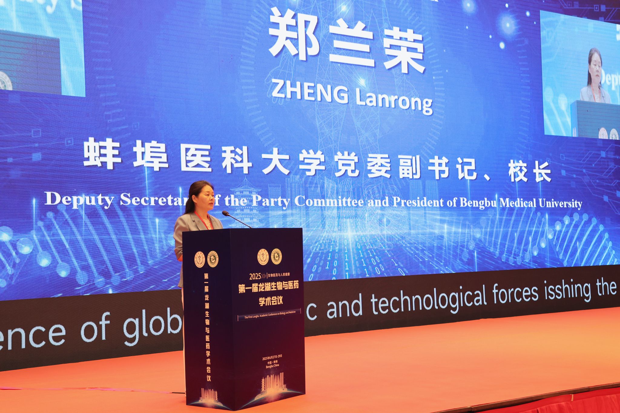 6月27日至29日,由蚌埠医科大学和安徽省临床试验学会共同主办的第一届龙湖生物与医药学术会议在蚌埠市召开。会议以“生物医药与人类健康”为主题,吸引了200余名海内外专家学者、研究生和医药企业代表参会,就生物医学与药学领域的前沿进展进行交流和研讨。开幕式上,校党委副书记、校长郑兰荣和安徽省临床试验学会主任顾问宣扬分别致辞;蚌埠医科大学副校长刘浩为闭幕式致辞。