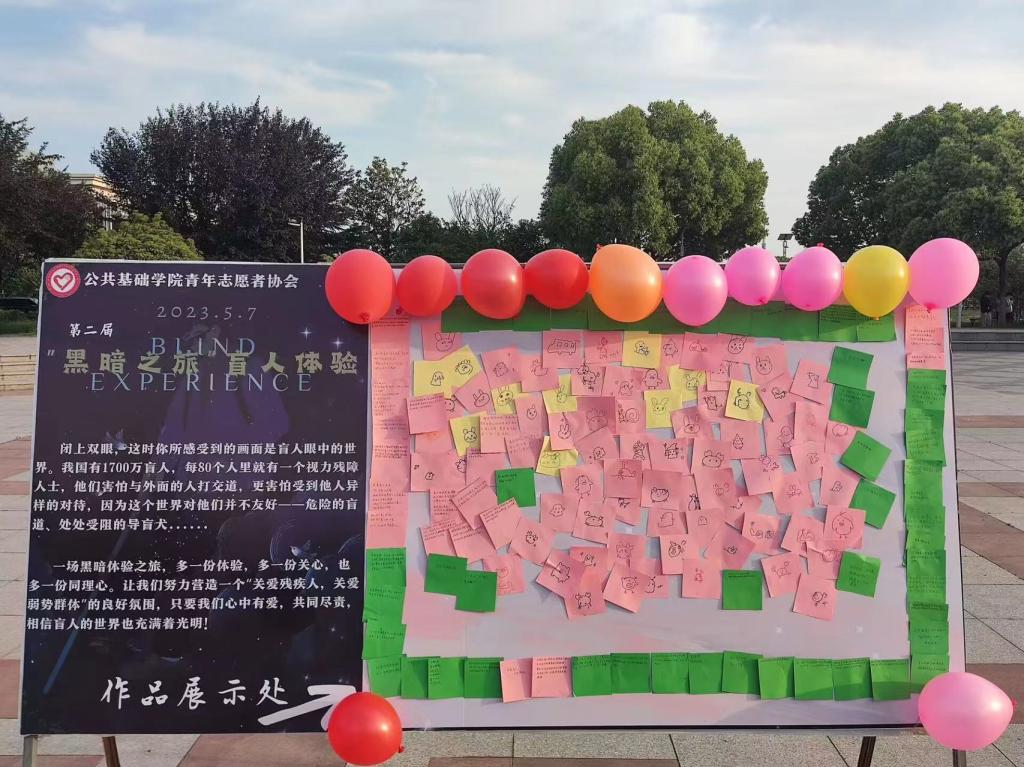 活动当天,两百名学生志愿者在工作人员的指导下,体验了五项盲人活动,了解到盲人世界里的众多危险,如:危险盲道、处处受阻的导盲犬。同学们在盲人写画中收获了“看不到颜色,梦想却充满了五颜六色”的绘画感悟;在盲人走路中感动于“眼前无限黑暗,内心充满光明”细腻与坚韧;在盲人写字中领悟到“活的有爱,传递温暖”,慰藉星光杳杳;在盲人扫雷中感慨于“盲道不盲,其利必行”的重要性……通过这些体验项目,同学们不但体会到了盲人的生活不易,也领悟到如何在黑暗中寻找自己的光!