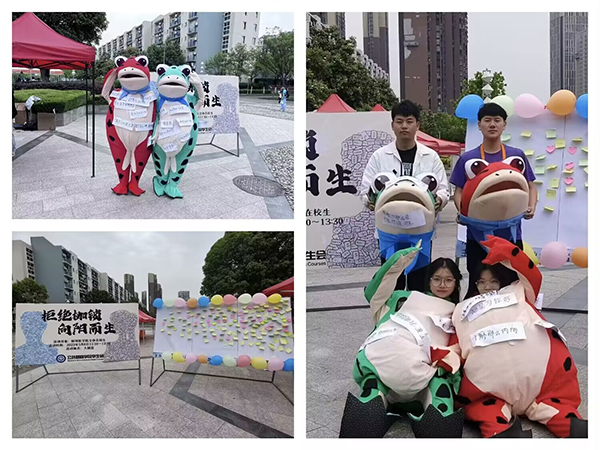 5月8日,公共基础学院学生会举办了撕掉刻板标签的活动,旨在通过该活动让大家远离焦虑,学会拒绝被定义!活动伊始,工作人员穿着贴满负能量标签的玩偶服在大圆盘附近宣传,来往学生被有趣的玩偶人所吸引,纷纷驻足参与进来,并伸出“援助之手”撕下玩偶人身上的一条条负面标签,帮助玩偶人摆脱枷锁,活动现场愉快温馨。同时,撕掉标签的之时会通过写下暖心、鼓励的便签来表达学生内心最真实的情感,传递最温柔的善意,呼吁同学们勇敢做最真实的自己,挣脱桎梏、认同自我、表现自我,勇于展现出自己独特的魅力。