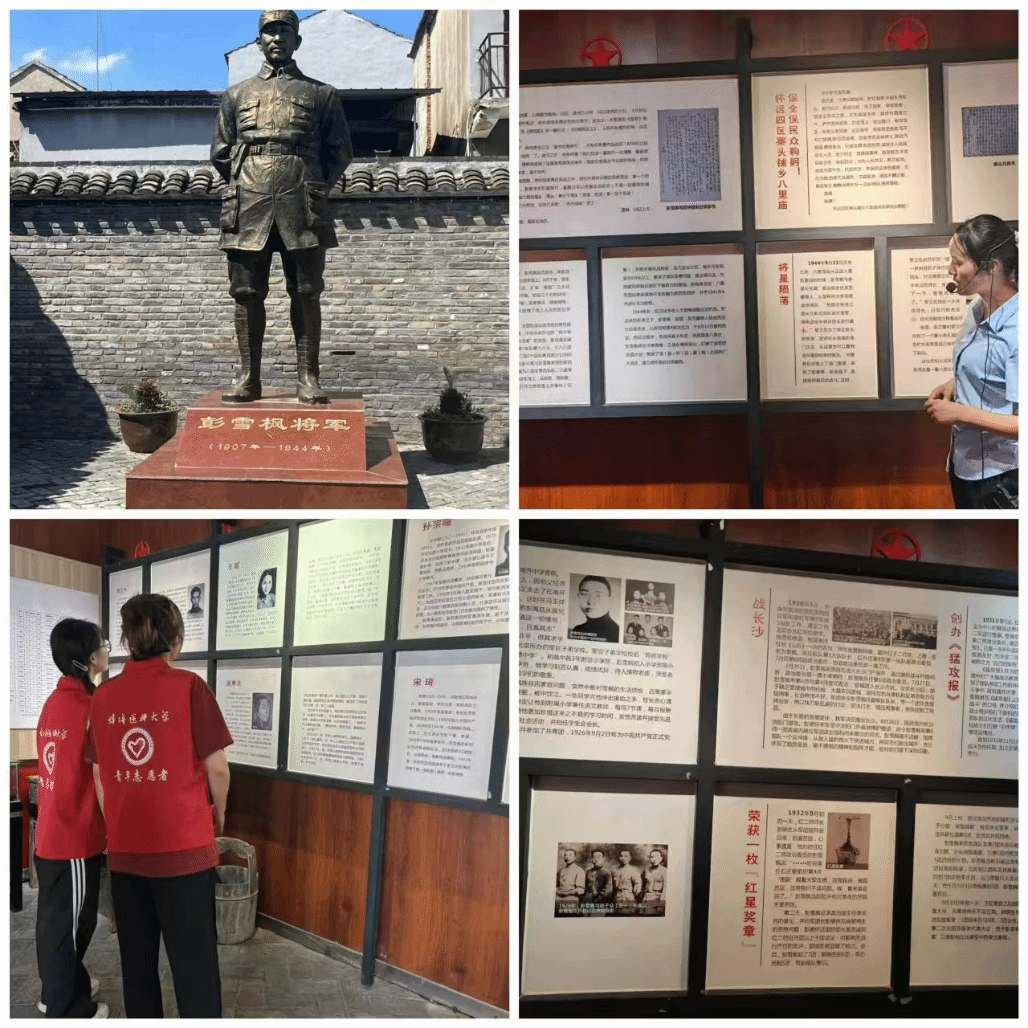 7月5日至7月6日,专项实践团前往蚌埠市怀远县龙亢镇新四军淮上办事处旧址及蚌埠市渡江战役总前委旧址,纪念馆内陈列着许多珍贵的文献资料和历史遗物,包括彭雪枫将军的雕像、抗战时期的照片、以及新四军在淮上地区开展游击战争的实物证据。通过这些展品,志愿者们了解到了新四军在淮上地区的重要战略地位,以及他们在抗日战争中发挥的关键作用。特别是彭雪枫将军率领的游击支队,多次成功袭击日伪军据点,为巩固和扩大淮上抗日根据地做出了巨大贡献。