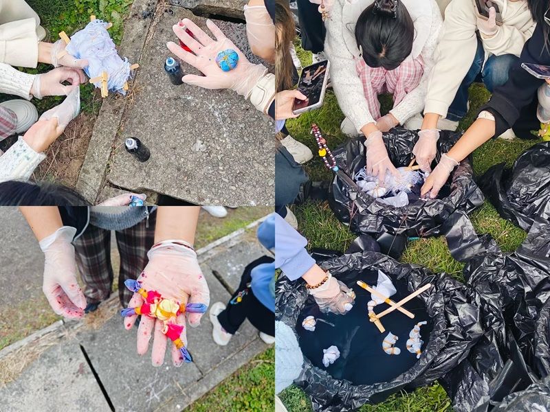 活动现场,志愿者同学们详细介绍了扎染的历史渊源、工艺特点和制作方法。从扎结到染色,每一个步骤都蕴含着古人的智慧和创作力。参与者聚精会神地聆听讲解,迫不及待地想要上手实操。在实际操作环节,大家纷纷拿起准备好的白色布料、皮筋、染料等工具开始尝试扎染。同学们将方巾浸湿,再使用棉线,橡皮筋等材料,根据自己的想法将方巾扎成想要的图案。布里生花,静待花开,一幅幅色彩斑斓、图案各异的的扎染作品陆续出炉。