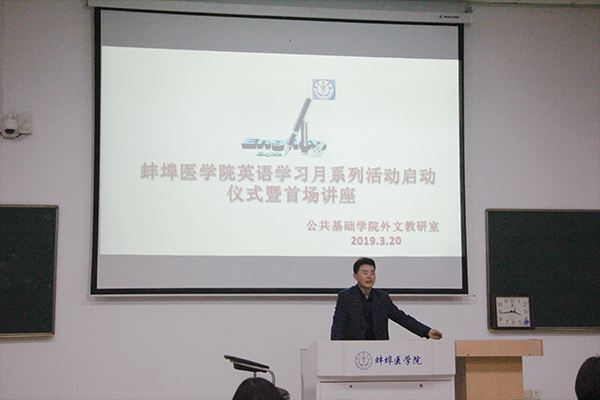 为激发我校学生学习英语的热情、培养他们英语学习及综合运用能力,公共基础学院外文教研室于3月20日启动了“大学生英语学习活动月”系列活动。启动仪式暨首场讲座活动在教学楼T2教室举行,外文教研室副主任郭书法教授主持了启动仪式。