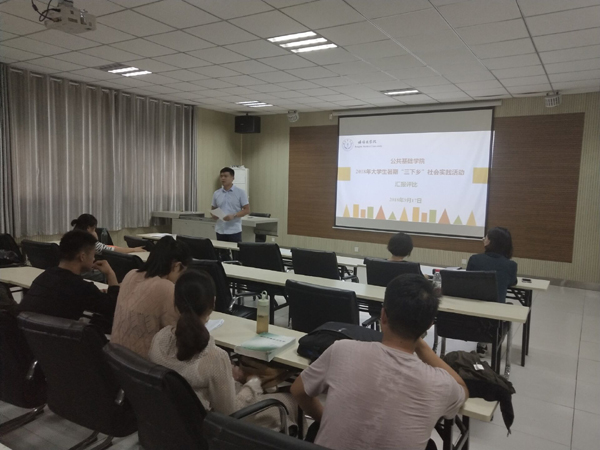 暑假期间,广大师生按照学院统一部署,积极行动,精心组织,认真策划,开展了广泛深刻的社会实践活动。为总结经验、提炼成果,9月17日下午,公共基础学院在D座六楼多功能厅举行2018年大学生暑期“三下乡”社会实践活动汇报评比工作。 学院共组建十三支实践团队,从传统文化的传播及发扬、食品质量与安全、药品知识的普及、民生及扶贫工作等方面深入农村、学校、社区,开展形式多样的社会实践活动,进行实地考察调研,服务当地居民。