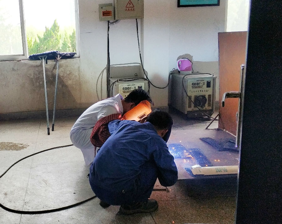 钳工部分主要是制作鸭嘴锤头,纯手工精加工的钳工是对同学们耐心、体力考验最大的环节。整个锤头制作全过程除了冲孔的步骤,一切都是纯手工完成的。同学们先从锯钢条、锉钢条的练习开始,然后将一条18.5mm的标准45号方钢对照着图纸要使画好的轮廓线,同学们经过一整天的手工锯锉,锤头的雏形已经被制作出来了,并通过砂纸打磨,闪闪发光的锤头整齐码放在钳工实训室的办公桌上。剩余的训练时间里同学们没有松懈,在钳工老师的严格要求之下完成了实验报告的书写与工件图的绘制。 焊工——钢水流动令人迷