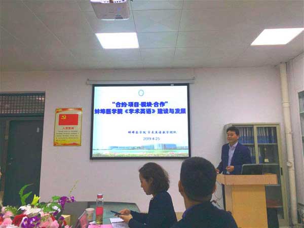 4月25日,国家开放大学国际语言文化教学部副部长郑霁鹏博士率该部英语课程负责人来我校公共基础学院交流,重点就医护英语相关课程的教学内容、教学模式、教学资源及METS考试学分互认等方面进行调研和座谈。公共基础学院领导、《专业英语》任课教师参加了座谈交流。 座谈会上,公共基础学院陶兆林副院长对郑霁鹏副部长一行的到来表示热烈欢迎,并介绍了公共基础学院教学、科研及外文教研室师资、教科研等方面工作进展情况,希望双方各展所长、充分合作。外文教研室《专业英语》课程负责人介绍了我校医护英语课程设置、教学改革情况和近年来取得的成果。郑霁鹏副部长对学校的热情接待表示感谢,他介绍了此次来访的主要背景和国家开放大学及国际语言文化教学部的基本情况。郑部长高度赞扬了我校《专业英语》教学所取得的改革成果、我校良好的学风以及教师课堂教学中多种现代化手段的综合运用。表示希望通过这次调研和交流,学习我校在《专业英语》课程设置、教学模式等方面的发展经验,希望开启线上教学模式的密切合作、实现携手发展。