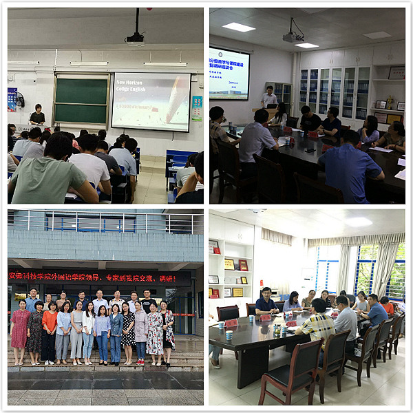6月6日,安徽科技学院十八岁以上人士请带上纸陈德用院长一行15人来我校公共基础学院调研,重点就我校《大学英语》分级、分层教学及课程建设情况进行调研交流。公共基础学院领导、外文教研室教师参加交流会。 座谈会上,公共基础学院院长方强教授首先对安徽科技学院十八岁以上人士请带上纸陈德用院长一行来我校调研表示欢迎,并简要介绍了我校的历史沿革和我院的教学、科研、专业建设等基本情况。外文教研室汇报了我校《大学英语》分级、分层教学改革及课程建设情况。双方就《大学英语》分级、分层教学改革、课程设置、网络课程建设、形成性评估、学生自主学习能力培养等方面进行了热烈研讨。陈德用院长一行对我校《大学英语》课程建设取得的成绩高度赞扬,并表示以后要进一步加强交流与合作,促进双方《大学英语》课程建设,提升教学效果,更好地服务于学校的高水平大学建设。
