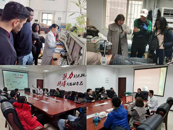 在康复理疗中心,王敏主任为留学生们现场展示、讲解了针刺、拔罐及推拿等中国传统医学和望、闻、问、切的诊断方法。留学生们对中医表现出极大的兴趣,还体验了部分项目。中药房中,留学生部对中国的中草药及其功能有了进一步的认识和了解。梁主任就全科医学病房的管理和“以病人为中心”的人性化服务做了详细的介绍。在临床教学培训示范中心,王敏主任为留学生们深入地讲授了中国古代传统医学的演变、发展中国古代著名的医学大家的思想和中医在国际上的影响力。