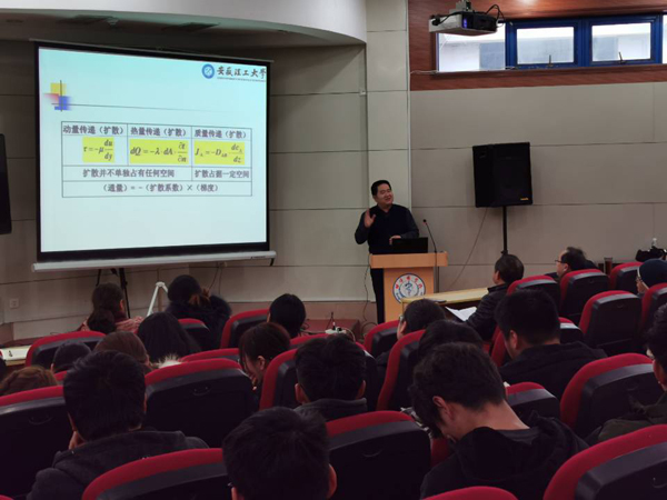 2019年12月26日,应我校邀请,安徽理工大学博士生导师陈明功教授在我校学术报告厅作了题为《化工原理在制药工程的应用》的学术讲座。讲座由科研处主持。科研处、公共基础学院相关领导,制药工程教研室全体教师及制药工程专业学生等100多人聆听了本次学术讲座。