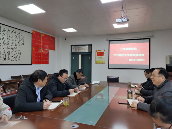 为了全力做好2022届毕业生就业工作,12月27日上午,公共基础学院于学院会议室召开了就业工作推进会,会议由公共基础学院院长方强主持,学院党政班子成员,制药工程、食品质量与安全和物联网工程三个专业的专业建设负责人,以及全体辅导员参加了本次会议。