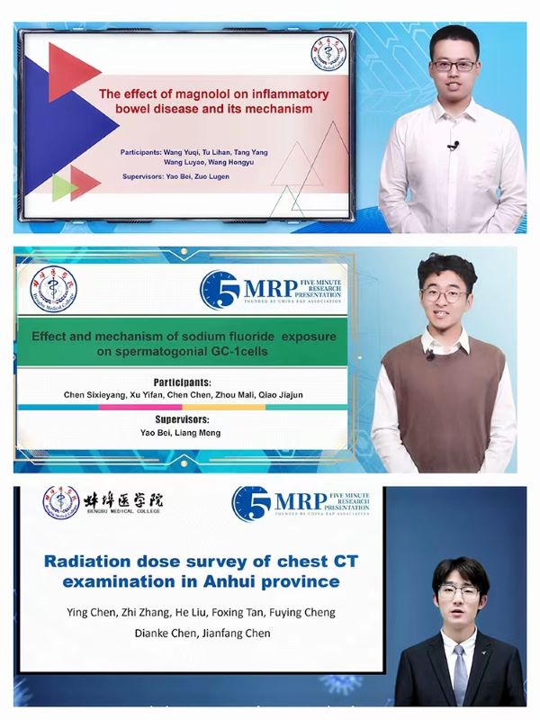 比赛自4月份启动以来,我校积极组织学生参赛,全校近80个团队报名参赛,公共基础学院外文教研室组织语言教师和学科教师按照大赛要求对参赛作品评审,共推荐28件作品参加国赛,最终我校荣获2项特等奖,1项一等奖1项,10项二等奖,15项三等奖的优异成绩。决赛中,我校选手基于所从事的科研项目,用英文演讲的形式对项目研究背景、研究目的、研究方法、研究结果、结论和研究意义等方面进行生动阐述,展现了较高的科研素养、英语应用能力及具有国际竞争力的新医科人才应有的学术潜力,他们的精彩表现得到了专家和评委的一致好评。