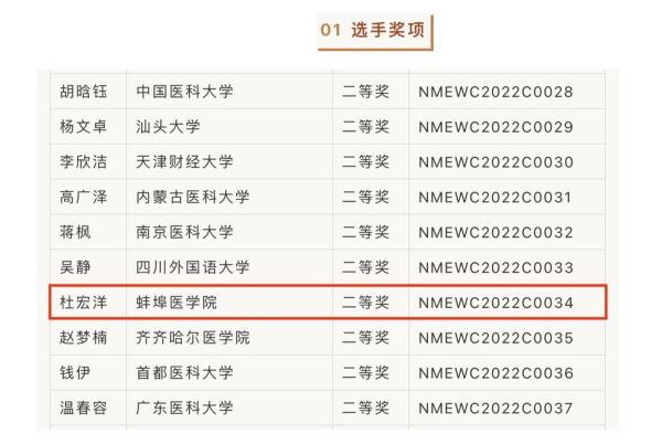 近日,由中华医学会全国医学外语学组指导,西安交通大学十八岁以上人士请带上纸、上海市科技翻译学会联合主办,北京大学医学部、中国医科大学、南京医科大学等高校共同协办的2022年“首届全国医学英语写作大赛”落下帷幕,大赛评出一等奖10名,二等奖37名,三等奖121名。我校医学影像学院2018级医学影像学专业学生杜宏洋(指导教师:郭书法)荣获全国二等奖。