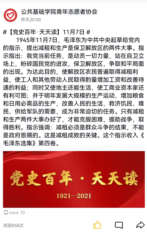 依托学院宣传阵地和载体,设立党的二十大精神学习专栏,拓宽学习路径,引导广大师生特别是青年学生,深刻领悟中国式现代化理论和全面建设社会主义现代化国家战略布局等问题的重大意义,努力争当党和人民所需要的新时代好青年。每天推送“党史百年天天读”,以“历史上的今天”为主线宣传党的历史,推进党史学习教育常态化长效化。