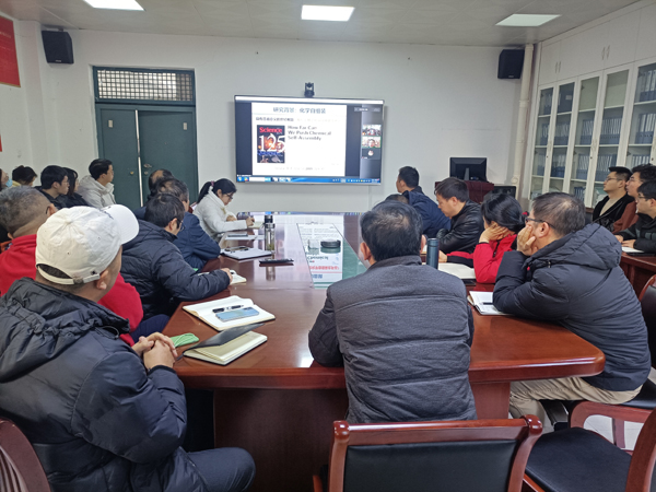 汪峰教授首先介绍了超分子聚合物的概念、起源、驱动力(非共价键作用)以及组装基元,并基于“传统等构聚合机制导致聚合结构规整性差”问题提出了“能否发展超分子聚合新方法,实现聚合结构高规整性?”这一科学挑战。紧接着,汪峰教授分别从“从等构超分子聚合到成核-链增长超分子聚合”、“从成核-链增长超分子聚合 到活性超分子聚合”、“从单组分到多组分超分子聚合”三方面对这一科学挑战进行深入研究,最后将手性超分子体系应用到圆偏振光检测,并展望了其在生物医药领域的应用前景。整个报告给大家呈现了如何将坚实的基础研究与实际应用相结合的思路。根据安排,学术报告会后,汪峰教授为学院师生进行了国家自然科学基金申请专题辅导讲座,分别从评议要点、撰写要求及标书的各个部分进行了细致的讲解和辅导。最后,汪峰教授和与会教师就报告内容和基金申请进行了热烈的讨论与交流。