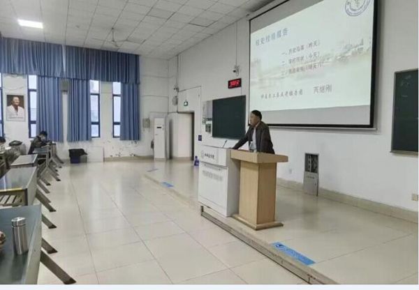 芮继刚老师从蚌医的昨天、今天和明天三个方面,为新生们全面深入地介绍了学校的创业历程、发展现状和未来前景。我校于1958年建立,至今已有65年的历史,经过一代代蚌医人薪火相传,潜心耕耘,励精图治,从单一的医学专业到如今医学、理学、工学、管理学等多学科门类,从简陋的建筑到美丽现代化的校园。蚌医的发展,不仅为安徽,乃至全国培养了以刘德培、段树民、陈孝平、王福生、范先群等5名院士为代表的大批优秀医学人才,而且孕育出“艰苦创业,严谨治学,精诚为医,团结奉献”的蚌医精神,历练出“笃学、精业、修德、厚生”的校训传统。芮继刚老师鼓励新生们在新的人生阶段努力学习、积极实践,实现德智体美劳全面发展,努力成为社会主义建设者和接班人。最后,芮继刚寄语全体新生,“今天你们以蚌医为骄傲,将来蚌医以你们为骄傲”。