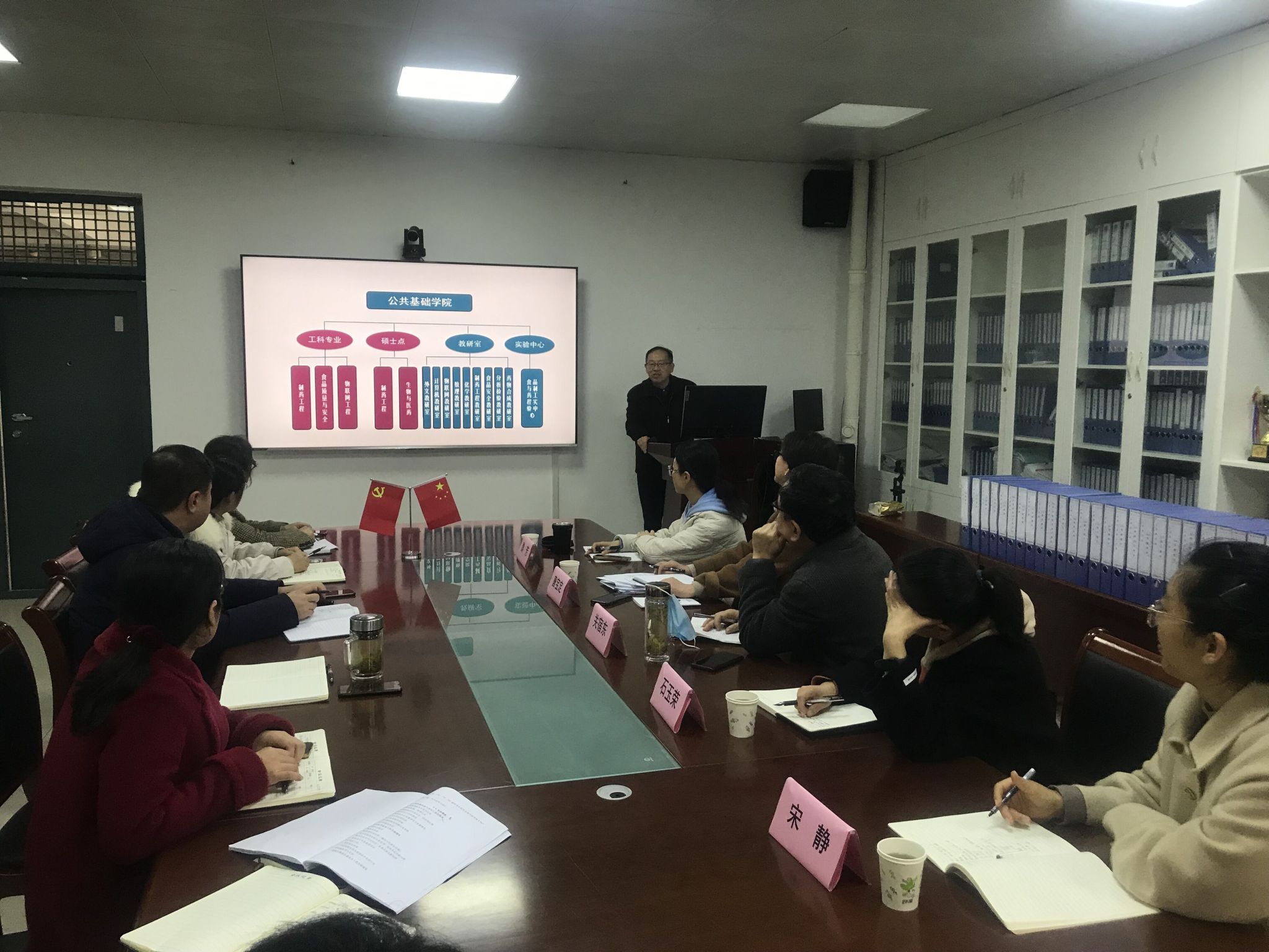 11月29日下午,由关宿东教授、魏芳教授、唐宝定教授和秘书组、材料组专家组成的校本科教育教学审核评估专家组一行5人对公共基础学院进行了现场评估。公共基础学院党政领导班子、各教研室(实验中心)负责人、专业负责人以及学生年级辅导员参加了此次会议。
