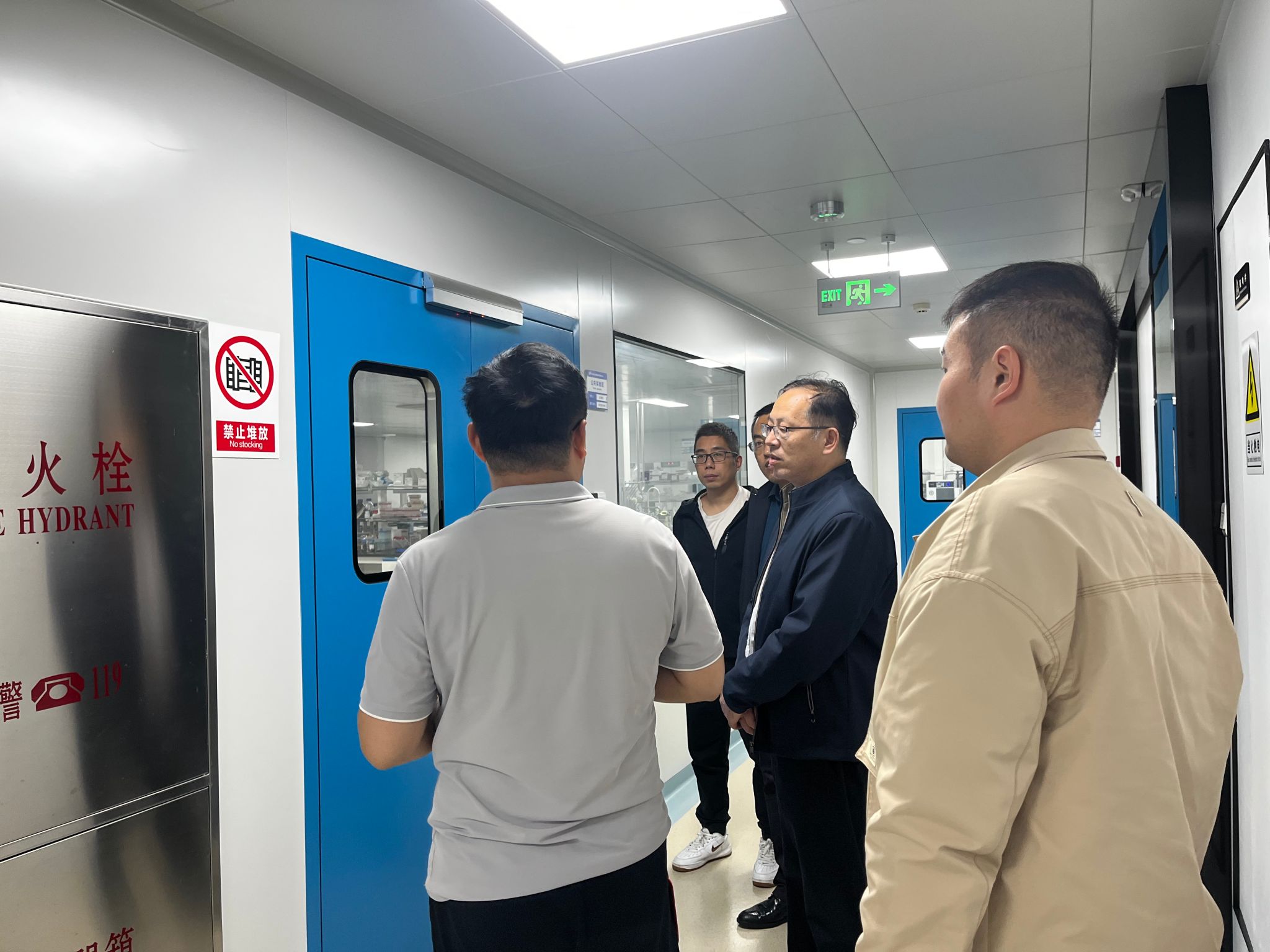 在公司专家的陪同下,方强一行参观了固体制剂生产车间、无菌注射剂生产车间、化药研发中心和生物医药研发中心,实地考察了软硬件设施,并与相关人员进行了深入的沟通交流。