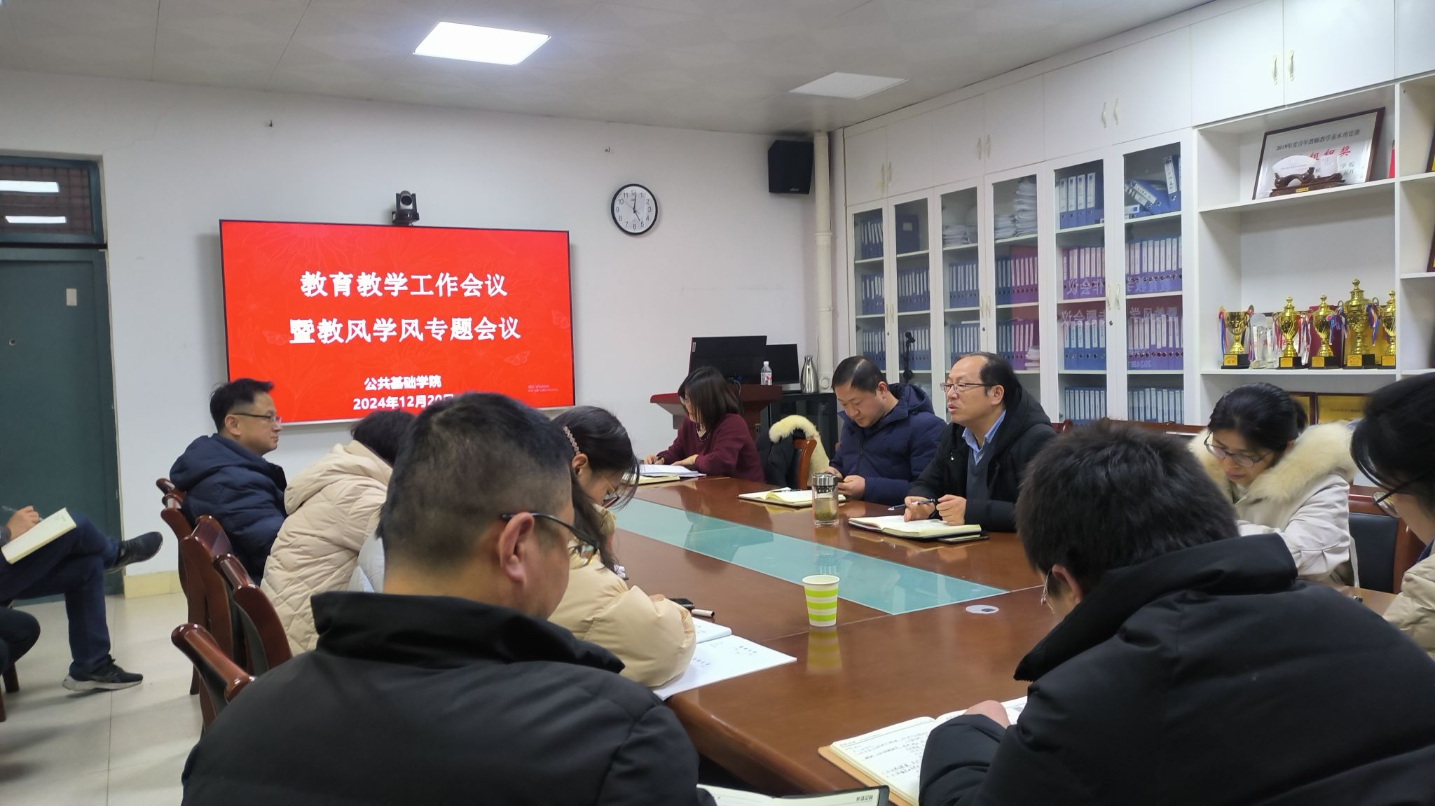 2024 年 12 月20日,公共基础学院教育教学工作会议暨教风学风工作第二次会议在学院会议室召开。学院领导班子成员、各专业负责人、各教研室、实验中心主任、辅导员、教学秘书参会。本次会议由方强院长主持,总结回顾本学期教学工作,同时加强教风学风建设。