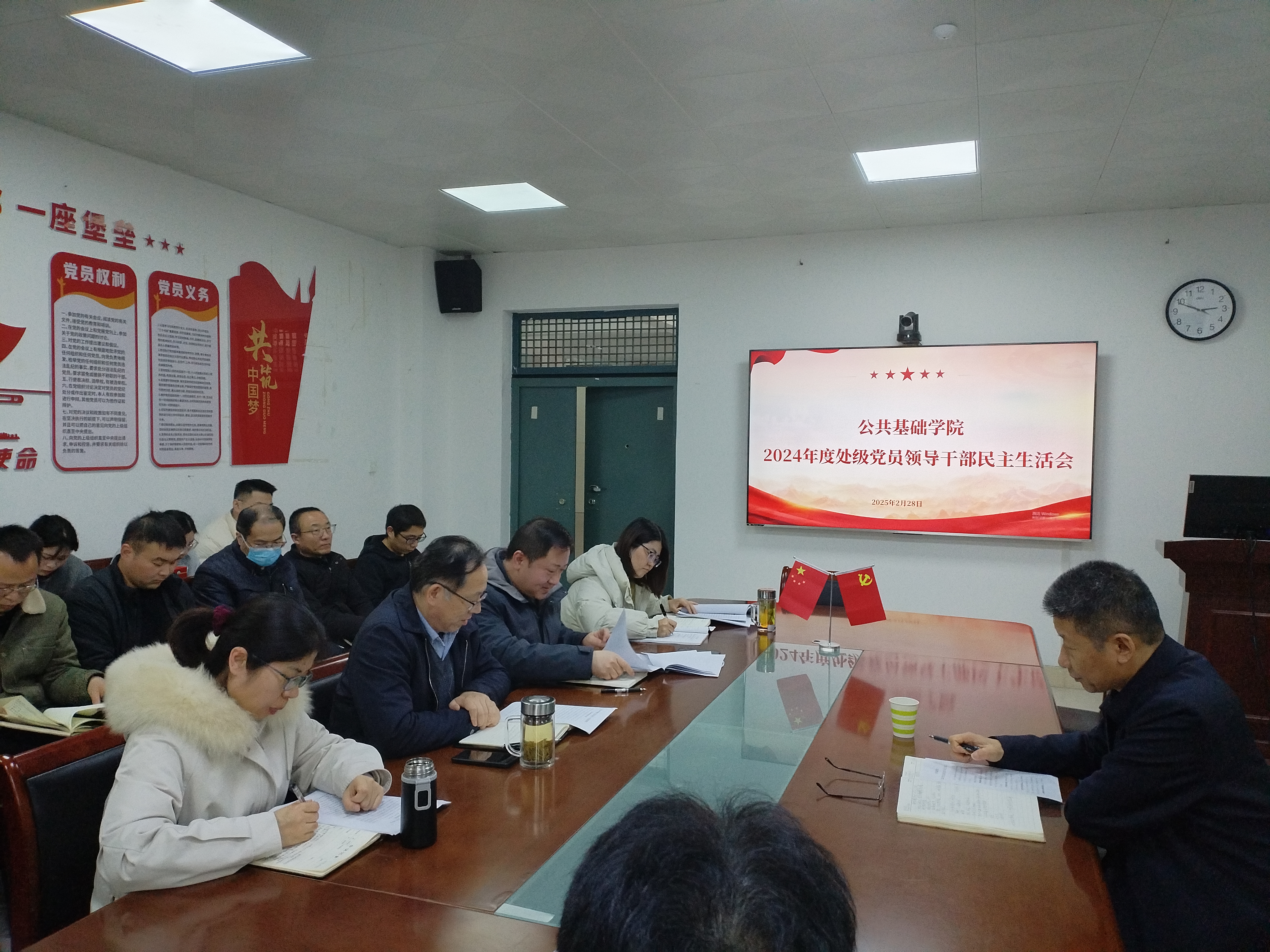2月28日下午,公共基础学院党委召开2024年度处级党员领导干部民主生活会,校党委副书记姚文兵教授到会指导,会议由学院党委副书记刘雁鸣主持,学院党委领导班子成员、学院支部书记和委员、纪委委员、教研室和实验中心负责人、专职辅导员及教师代表参加会议。