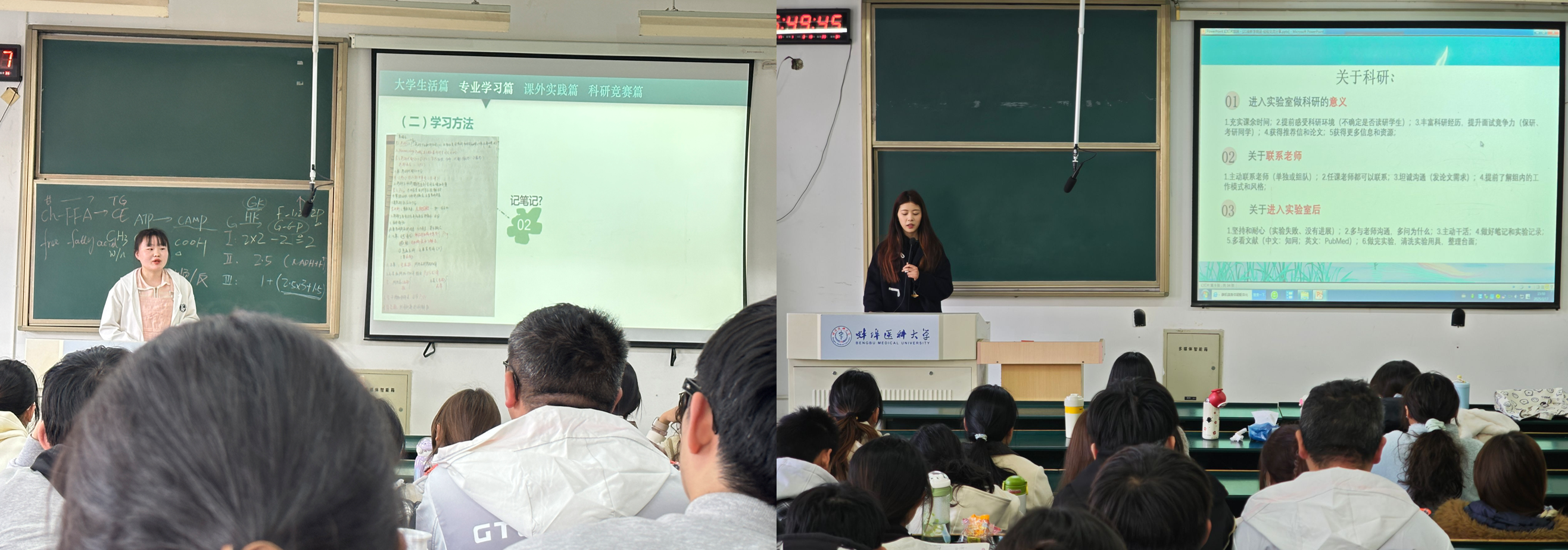 各年级还邀请2021级获得推免资格优秀毕业生代表进行学习经验分享。毕业生结合自身经历,详细围绕大学期间的学科竞赛、学习方法、时间管理与目标规划等方面展开介绍,分享了推免、考研、实习等经验,在良好学习习惯养成、学习方法优化、科研实践、心态调整等方面给予学弟学妹们中肯的建议。同学们普遍认识到,大学学习不仅是知识的积累,更是能力的提升和思维的拓宽,经验分享为同学们提供了切实可行的指导建议和努力方向。