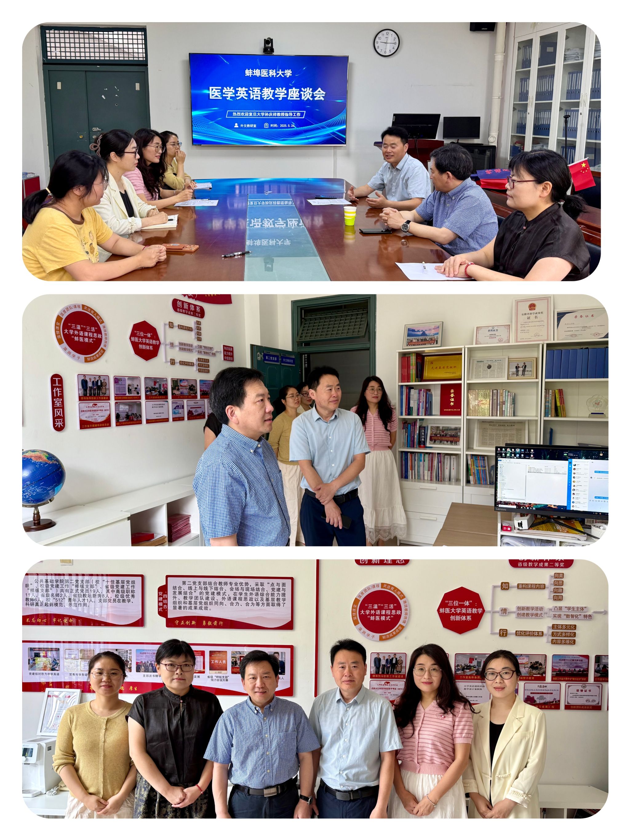 座谈会上,孙庆祥教授与外文教研室的医学英语教师围绕“交大医学实验班英语课程设置”和“研究生英语教材编写”等议题展开研讨。孙教授结合复旦大学的教学经验,对我校医学英语课程体系的优化提出了宝贵建议,并就教材编写中的重点难点分享了见解。座谈会后,孙教授参观了省级教学创新平台郭书法创新工作室,对我校在医学英语教学改革和创新方面的成果给予了高度评价。
