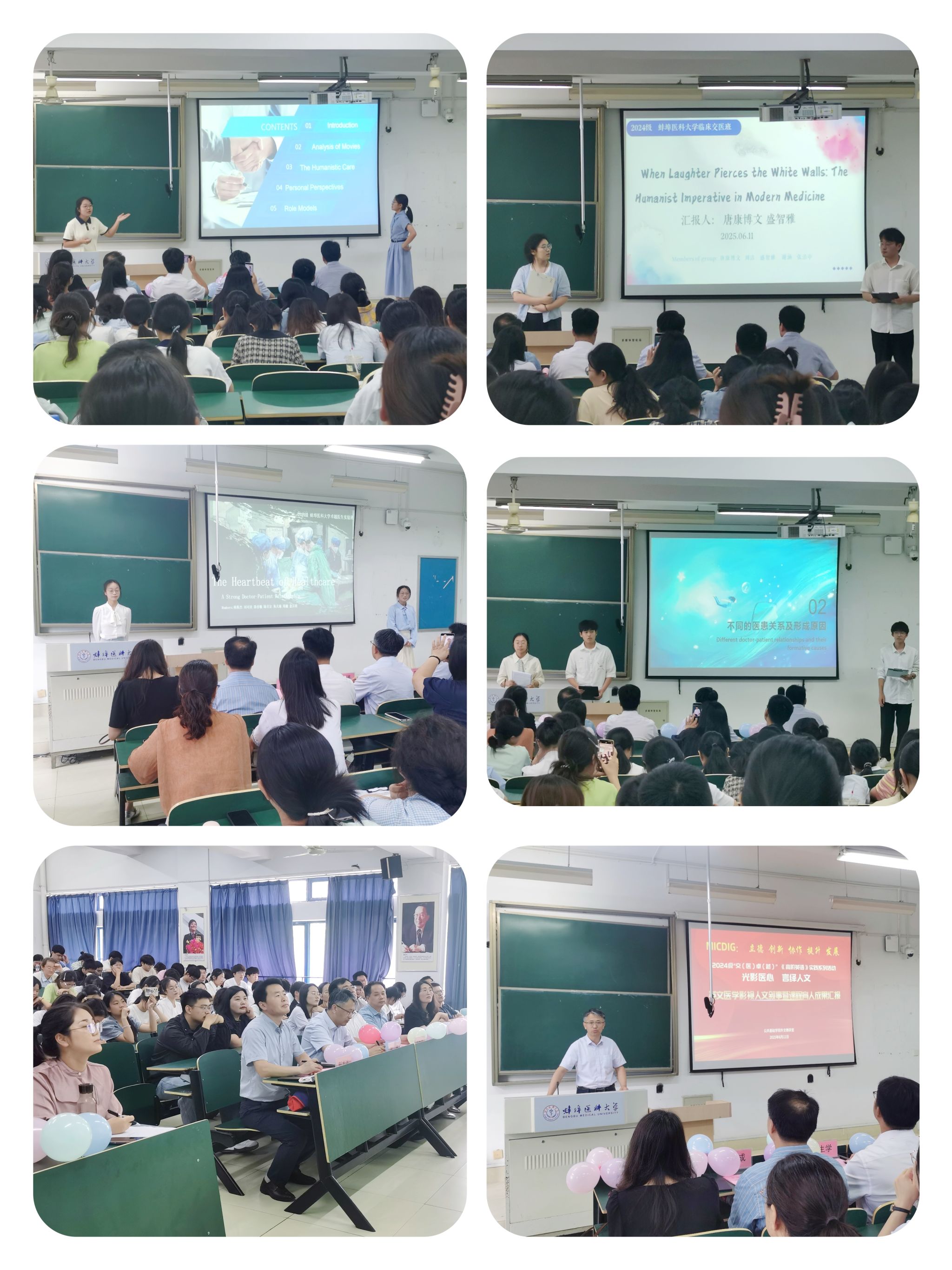 活动以PPT小组汇报+英语演讲的形式展开,旨在为同学们提供展示对医学人文的深刻理解与英语表达的综合实践能力的平台。同学们分别围绕医学人文主题进行了精彩汇报,汇报主题丰富多元,彰显医学人文关怀。‘The Heartbeat of Healthcare: A Strong Doctor-Patient Relationship’探讨了医患关系在医疗实践中的核心作用,强调信任与沟通的重要性;《当笑声穿透白色高墙:〈心灵点滴〉的治愈启示》结合经典电影《心灵点滴》,分析了幽默与人文关怀在医疗场景中的治愈力量;‘The Ark and the Lighthouse: On the Immeasurable Warmth of Medicine’ 以“方舟与灯塔”为喻,阐释了医学在人类苦难中提供的希望与温暖;《术蕴精诚通性命·心含慈悲渡人间》基于电影Wit主题和青年医生的职责,探讨了医术与仁心的辩证统一。