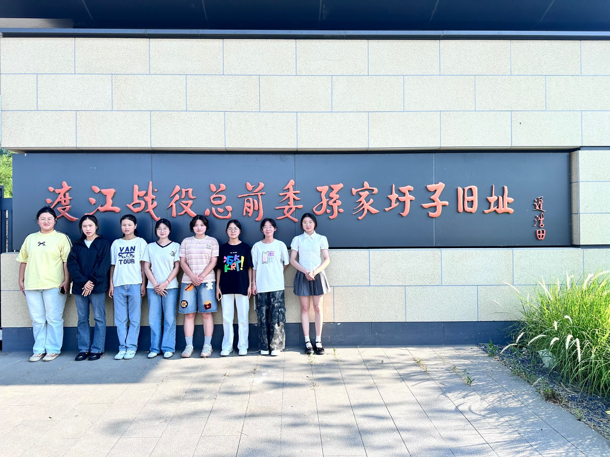 7 月 8 日上午 9 时,团队抵达孙家圩子渡江战役旧址。尽管旧址内部暂未对外开放,队员们仍以严谨的态度开展实地学习:在镌刻 “渡江战役总前委孙家圩子旧址” 的纪念石碑前驻足沉思,结合史料回溯 1949 年邓小平、陈毅等老一辈革命家在此运筹帷幄的壮阔场景;在青砖灰瓦的历史建筑群旁细致观察,从留存的风貌中体悟当年军事指挥的紧张氛围。这种 “因地制宜” 的学习方式,展现了青年学子对历史的敬畏之心,更体现了 “在实践中学习、在感悟中传承” 的研学智慧。